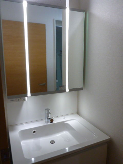 鏡の間にLED照明が入っており下方からも顔に光が当たるため