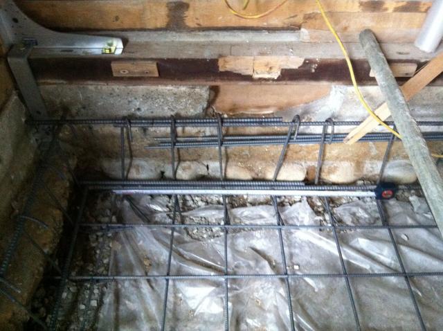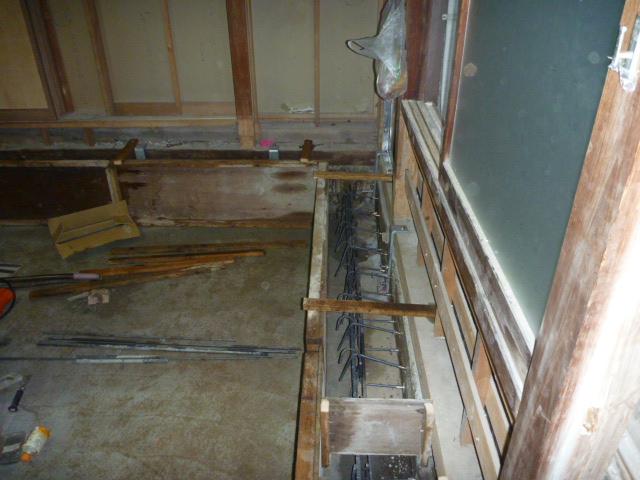あります。既存の基礎の立ち上がり部分に鉄筋入りの基礎を増し打ちします。