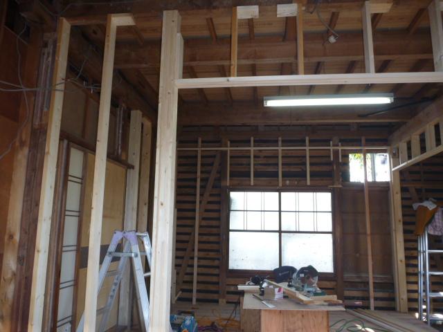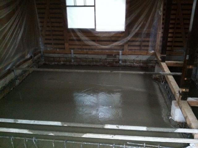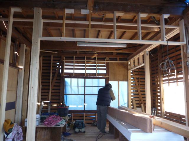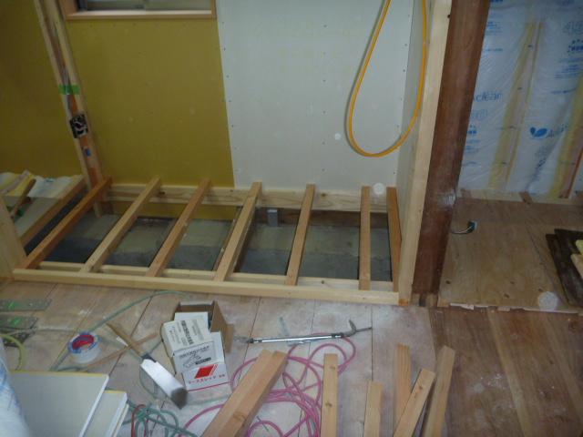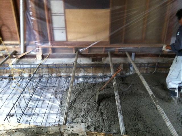 2011年12月6日 施工事例, 耐震柱の補強も終わり、続いて畳敷き床に移ります。