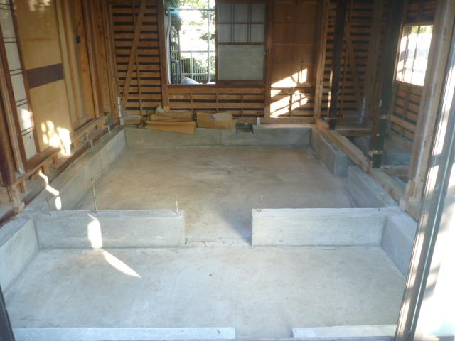 既存の基礎を補強する事です。既存の基礎が無筋(鉄筋が入っていない)