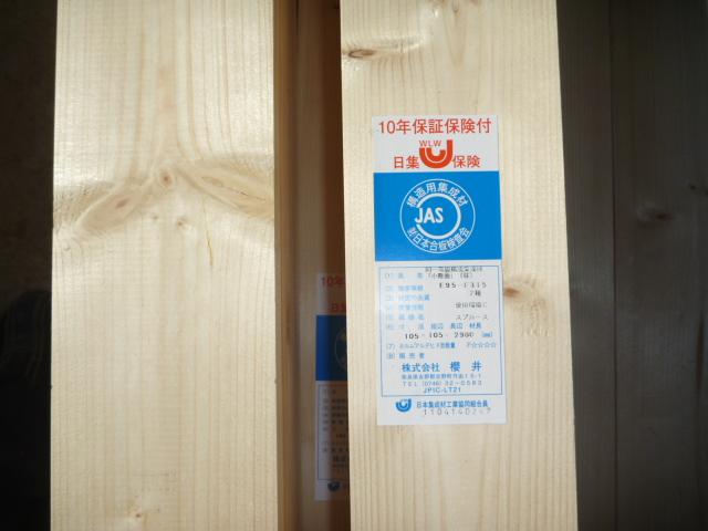 今回、柱の補強に「10年保証保険付」スプルース材を使用します。