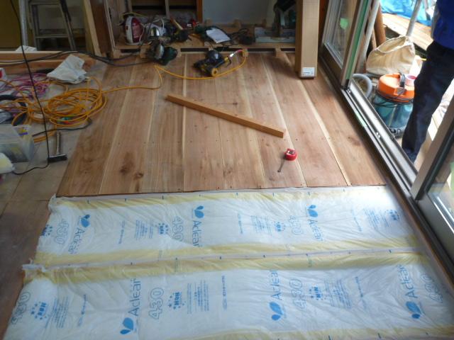 柱の補強も終わり、続いて畳敷き床に移ります。