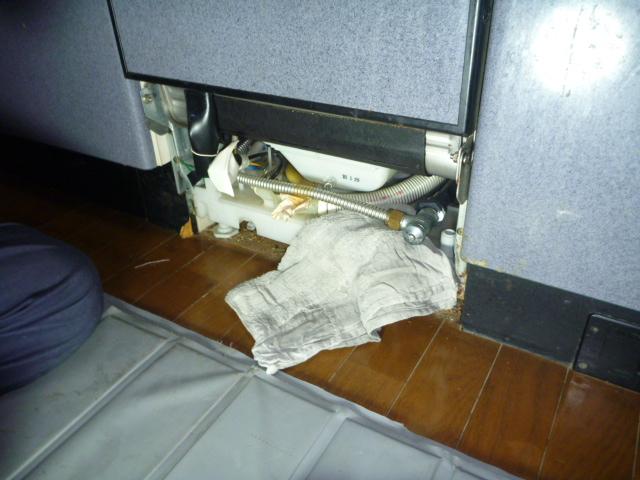 まずはカバーを外し本体と接続されている給水・排水管及び電源・アースを取り外します。