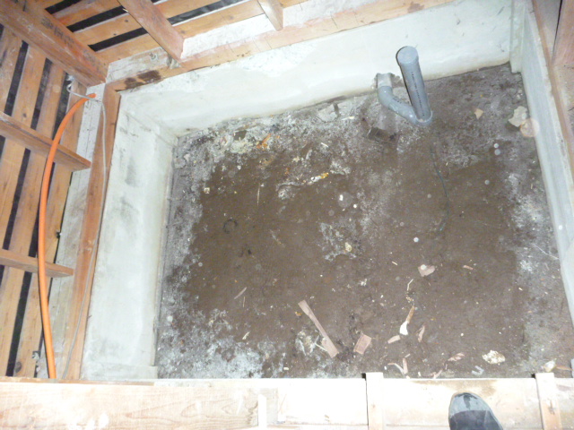 本来であれば排水管も排水マスに引き込む工事を行うのですが、このあとゲリラ豪雨に襲われ工事が中断となりました。