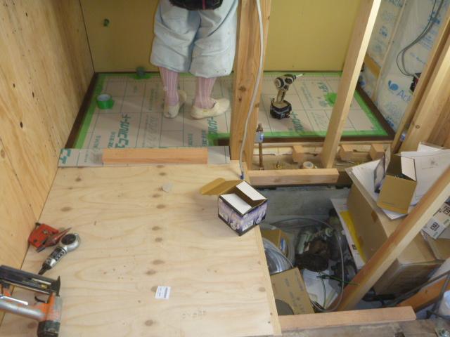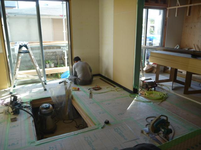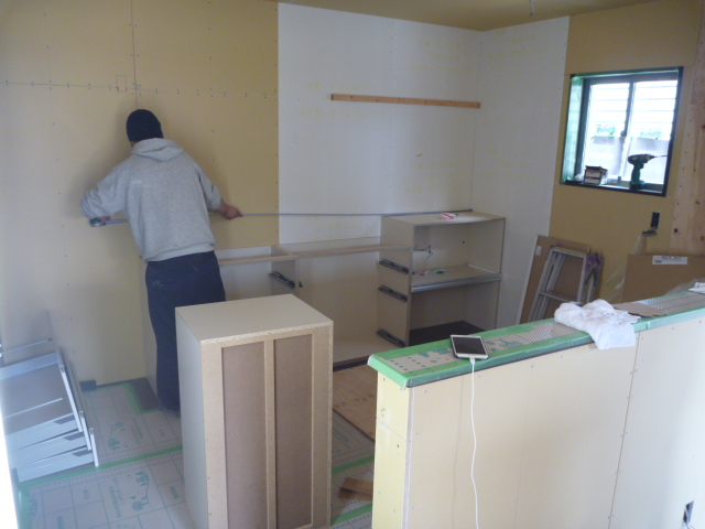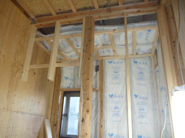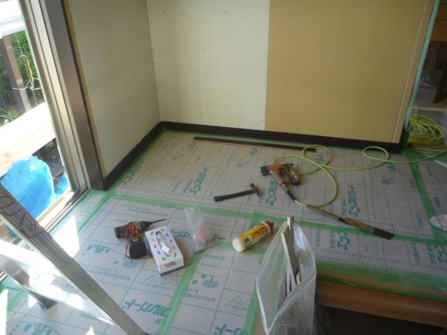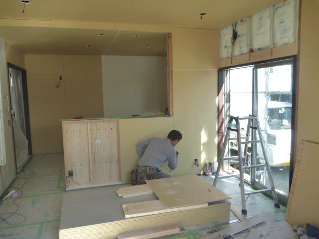断熱材を壁・天井に敷き詰め床・壁を仕上げていきます。