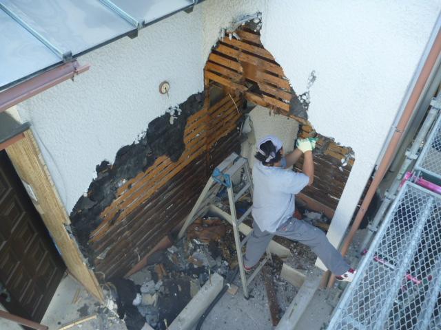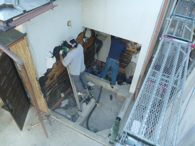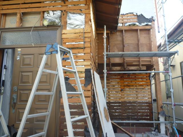 増築部となる個所の外壁を解体します。