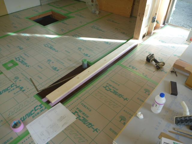 リビング・キッチンの床暖房下準備を行います。