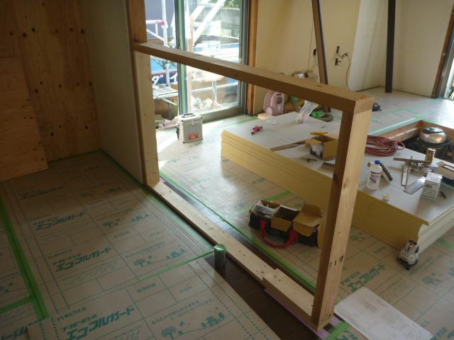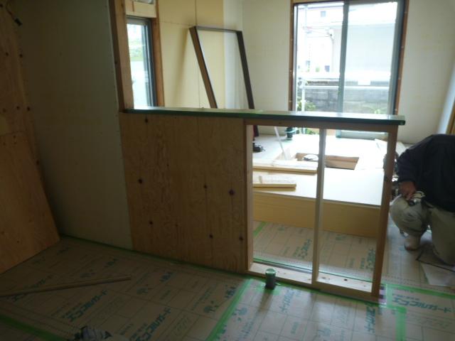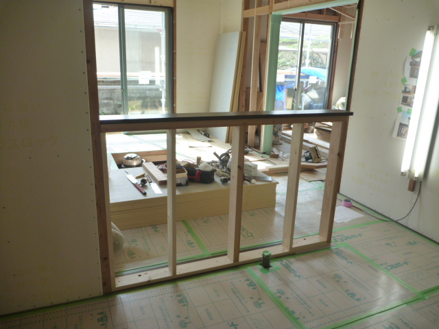 キッチンカウンターの造作を行います。