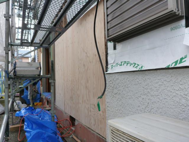 リビング・キッチンとなるサッシの交換及び、外壁に取り掛かります。