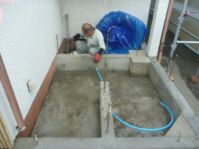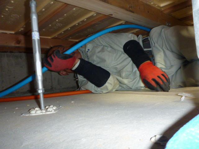 大工仕事と並行して、給水管の配管をします。