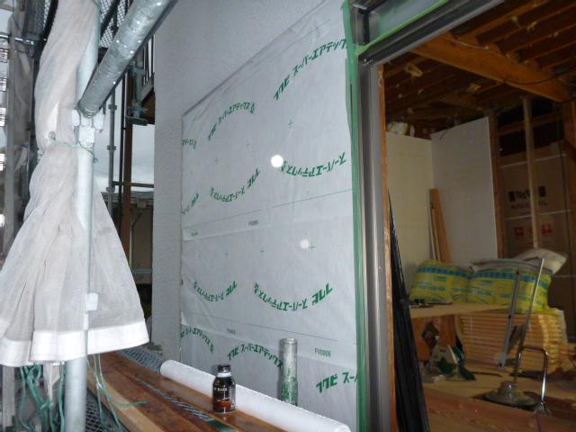 ラーチ合板の上に防水シートを貼り、下地は完了。