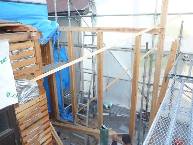 増築に伴う解体と建て方になります。
