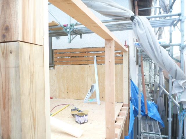柱を建て、壁を造作していきます。