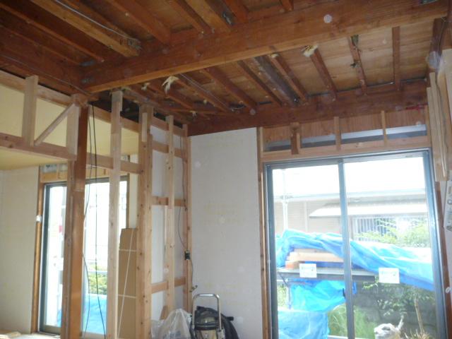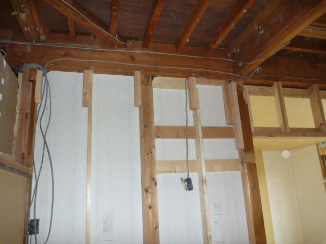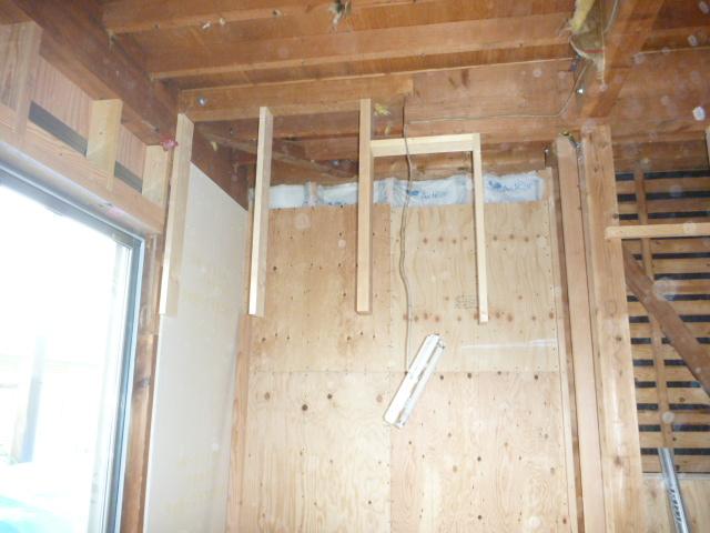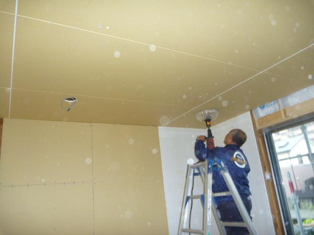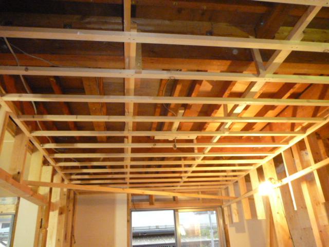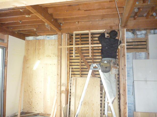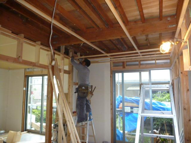 壁の下地が出来た所で、天井下地の野縁を入れていきます。