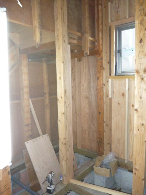 1階トイレ・階段下収納を造作していきます。