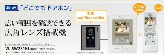 工事は2時間で終了しました。今回使用したドアフォンはこちらの「VL-SW231KL」。