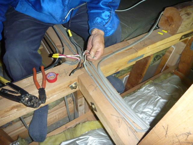 ①1階リビングは、「玄関~1階」と「1階~2階」へつながる屋内線を結び、蓋をして完了。
