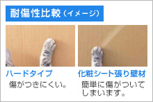 傷つきにくいフローリングと壁仕上げ材のリフォームの提案ですよ。