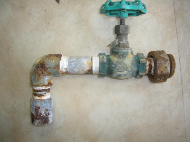 上記の水道管、状態が悪いので、地中に埋まっている配管を取り出してみました。