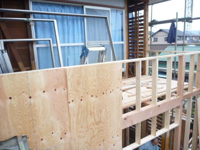 スタッフブログ, 施工事例 2011年12月18日1階縁側2階ベランダの建前準備をしています。