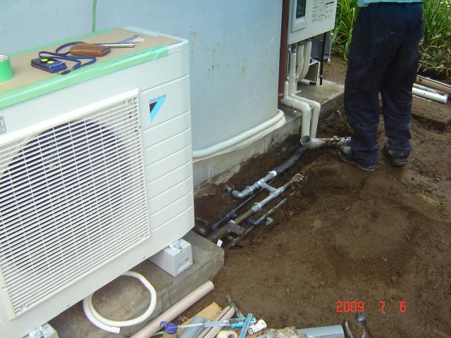 タンクとヒートポンプは別々に基礎を打ちました。