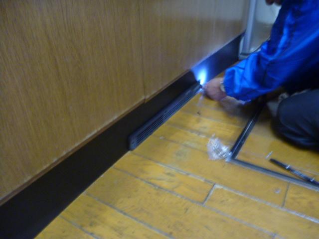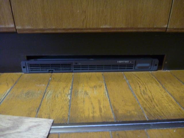以前に当店でIHクッキングヒーターを導入されたお客様ですが、今回はこのシステムキッチンに装備されている足元温風機が壊れてしまった為に交換工事となりました。