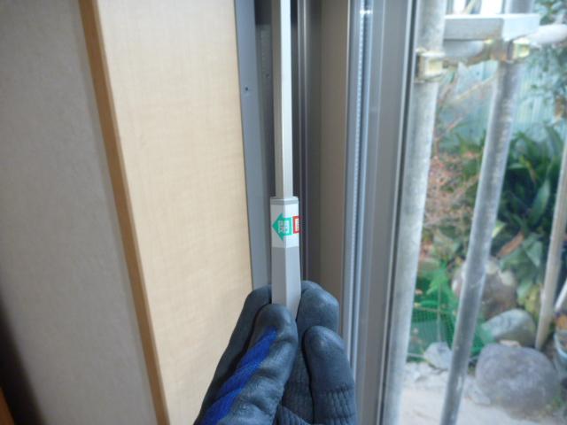 既に収まっているサッシのシャッターレールにシャッターを合わせて固定します。