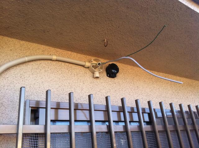 浴室暖房機との接続は屋外で行わなくてはならない為、外壁に穴をあけ外にケーブルを出します。