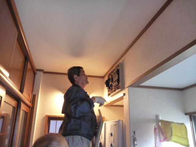 まずは屋外からきている電気を遮断し、分電場より天井裏にケーブルをお風呂場まで引き込みます。