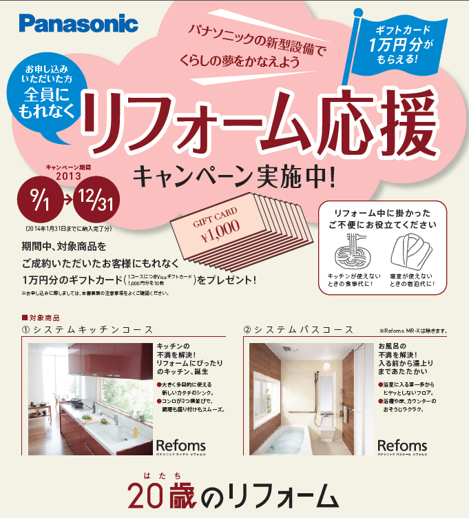 2013年10月25日 スタッフブログパナソニックの新型設備導入で、ギフト券1万円分をプレゼント!!