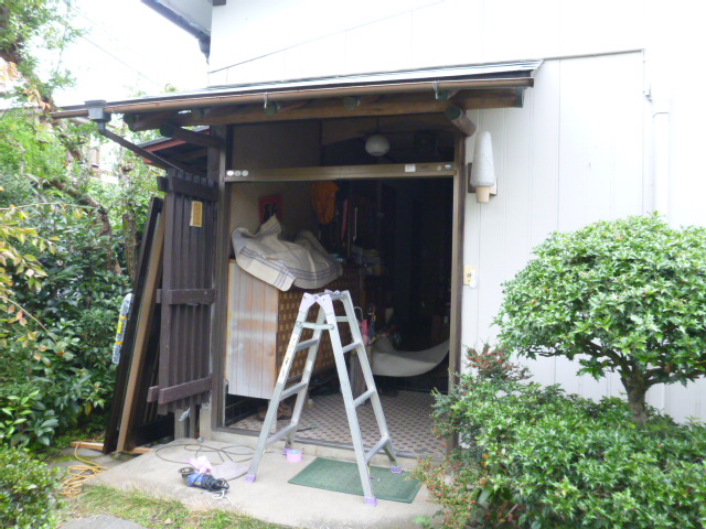まずは、既存の解体を行い、新しい玄関サッシを取り付けるための下地を作ります。
