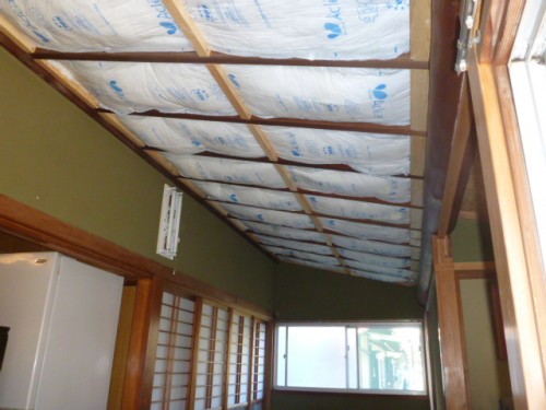 単に化粧板を貼るのでは、年数とともに同じような事が起きるため、まずは垂木の間に
