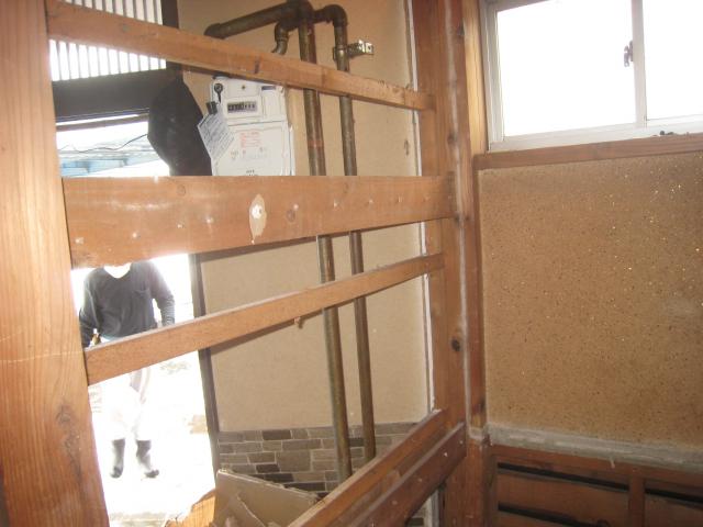 引き戸にして欲しいとの要望があり解体してみてドア脇の柱が抜けるようで