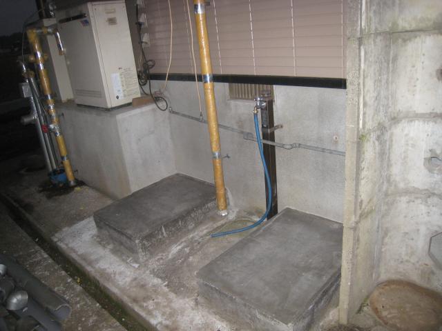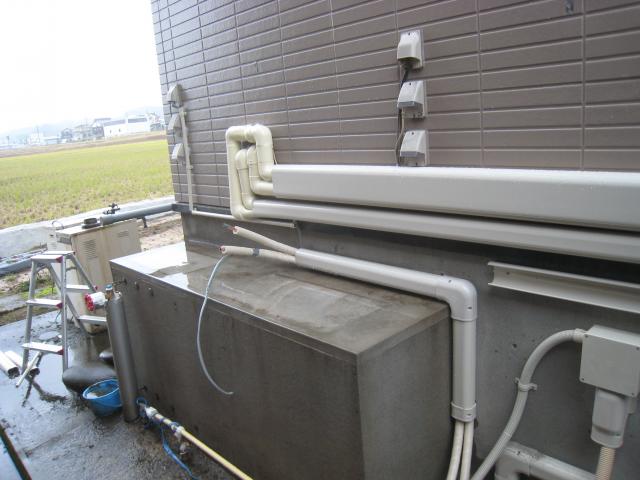 追い炊き配管は基礎貫通しエコキュートの
