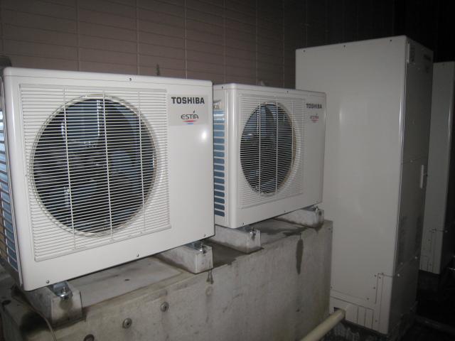 入れて、ヒートポンプはエアコン室外機と2段置台にしました。