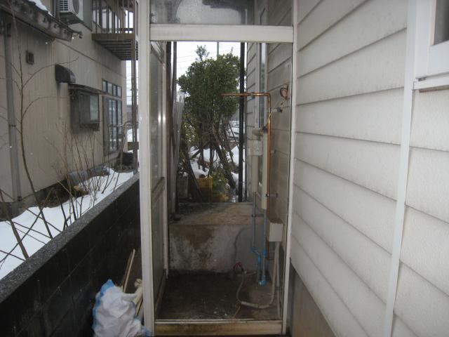 一部保温材を剥した状態です。家と車庫の間が風の通り道になっており仕事中も