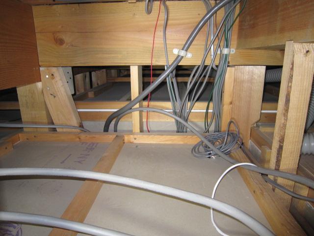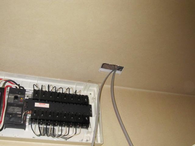 分電盤 天井部を開口し通線しました。