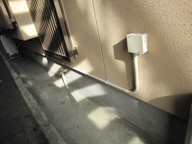 配線はユニットバスの上より外壁にだし通線しました。