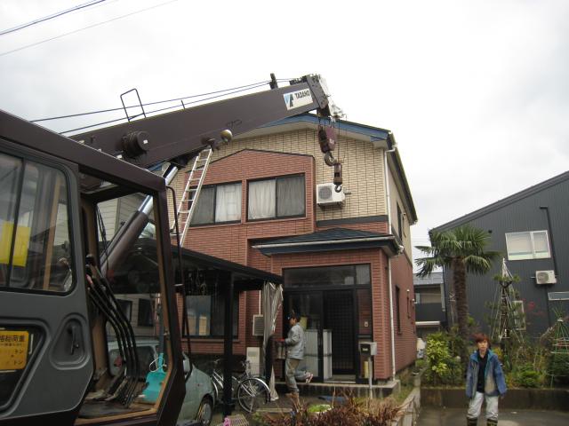 クレーンを頼んで降ろしました。