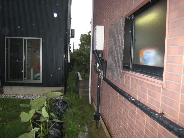 以前の配管の穴はコーキングでふさぎ外壁と同色に塗装しておきました。