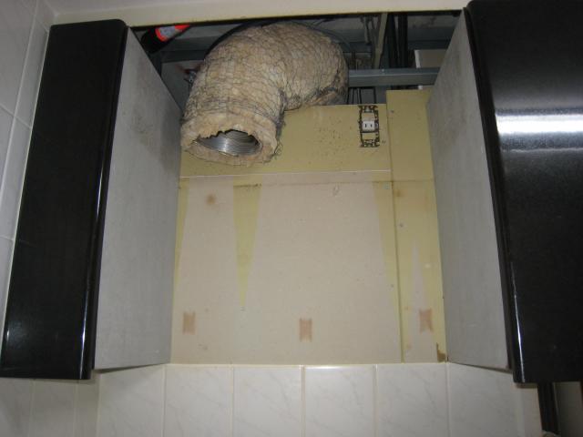 させていただきました。一番最初にレンジフードを取外し天井裏を除いたのですが