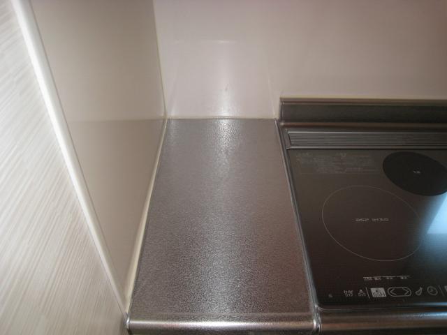 シンク脇とコンロ脇両方とも3cm程すいていたので3cmのフィラで前面は隠し天板は