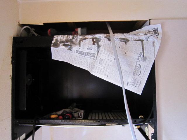 エコキュートと平行してIHの取付です。配線はレンジフードを一旦取外し線を降ろしました。