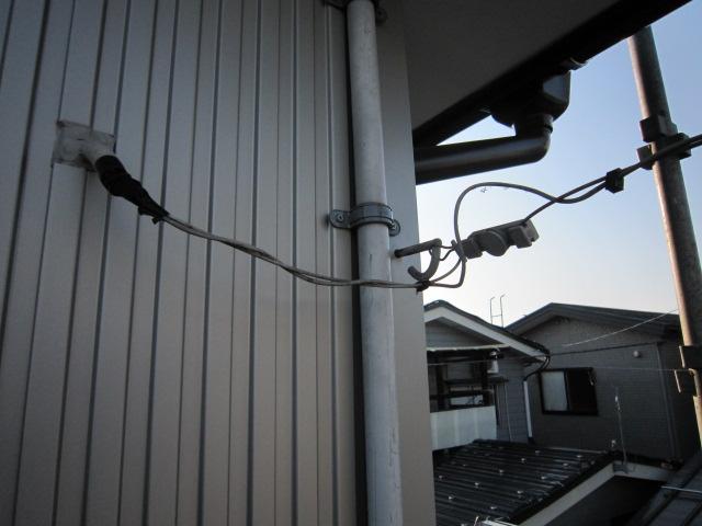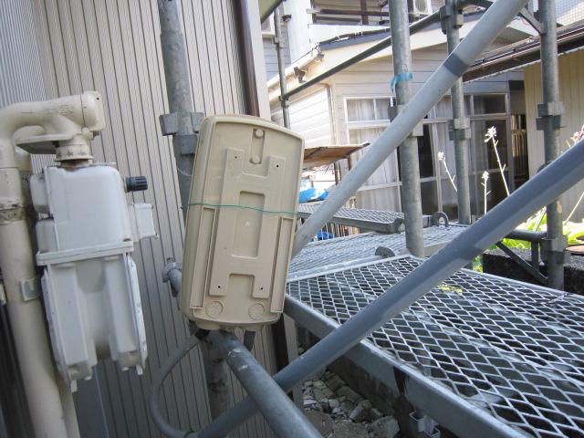 長岡市YT様の外壁工事が終了して、引込線や電力メーター、ガス給湯器、エアコンの脱着工事です。