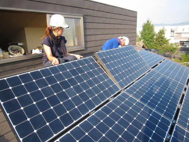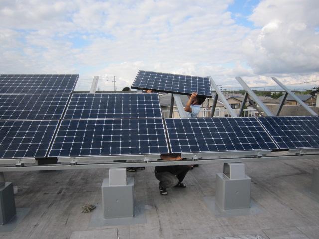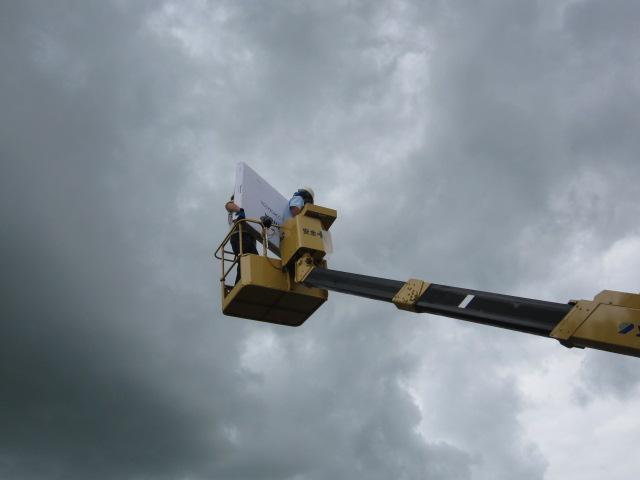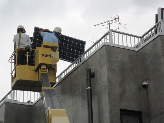 パネルは高所作業車で上げました。