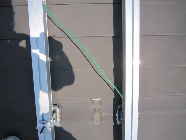 アース線とDCケーブルの配線と縦桟にケーブルを留めます。