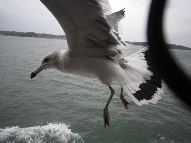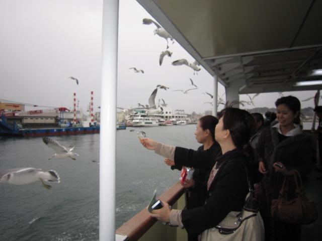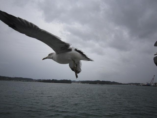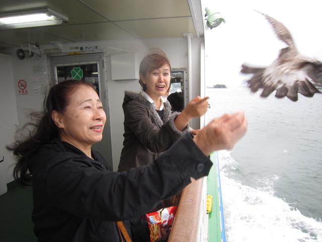 みんな童心に戻ってかもめに「かっぱえびせん」を食べさせて