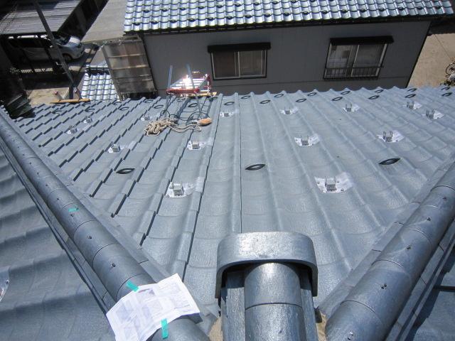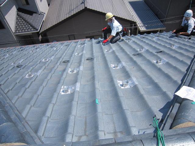 南面と西面に瓦をとり支持瓦を取り替えします。