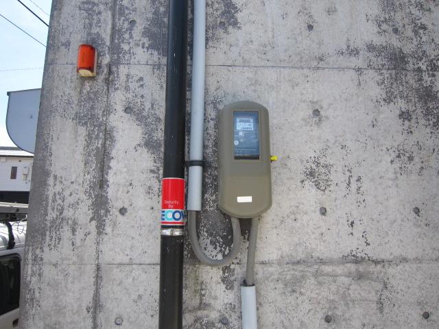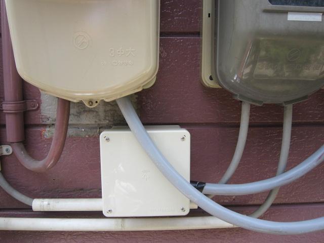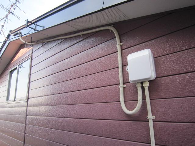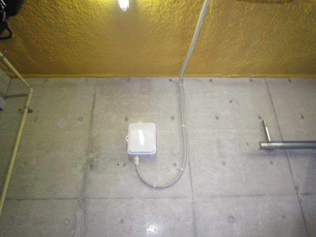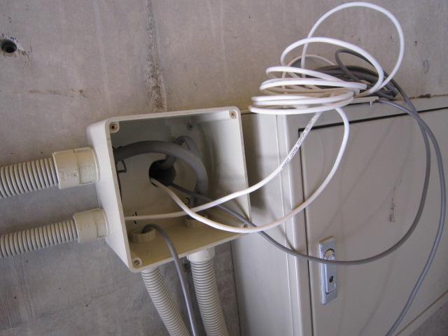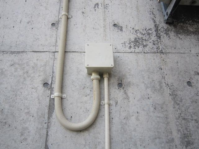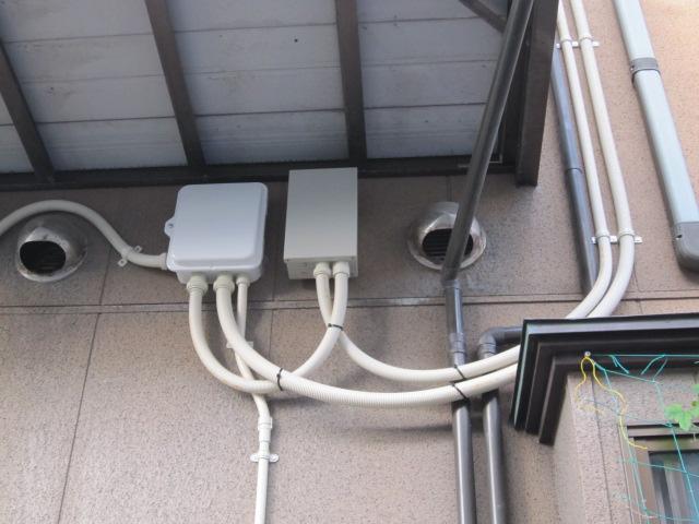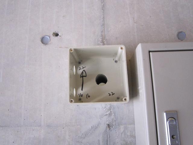 壁貫通した穴は、接続箱に、、、左は昇圧器ユニットです。