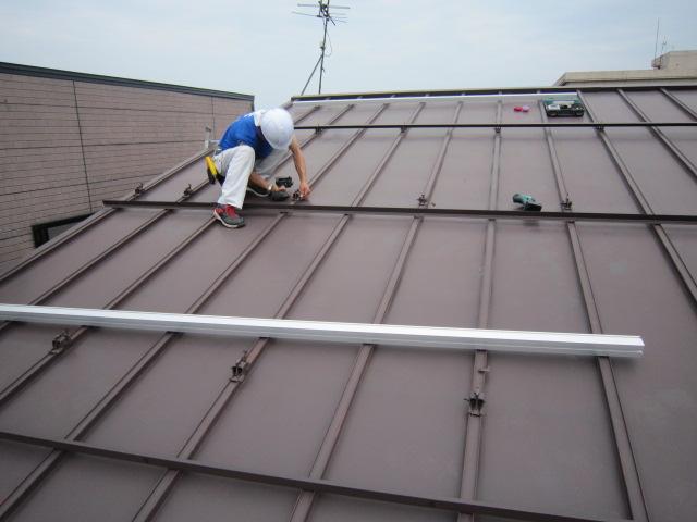 固定金具とパネル縦桟の取付が夕方になってしまいました。